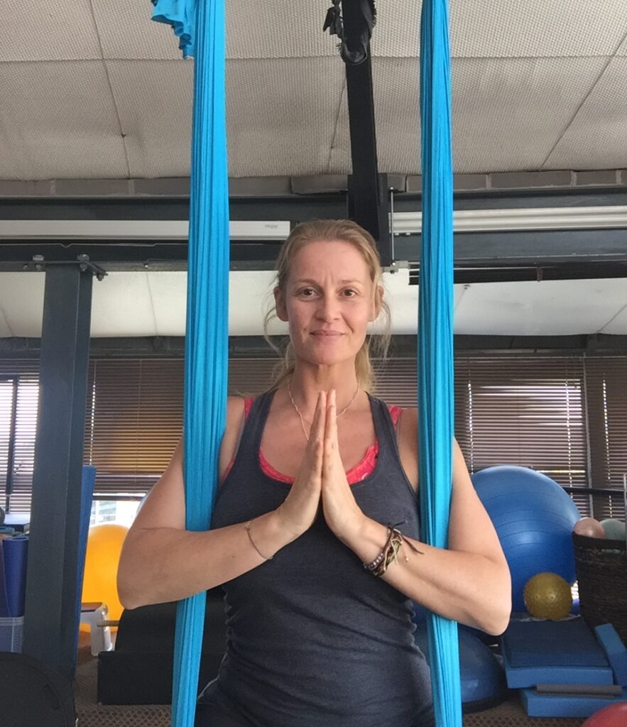 Using a fabric ‘hammock’ suspended from the roof for a mindful, meditative, strengthening practice with a sense of playfulness through tumbles & swinging and hanging upside down (see demo)